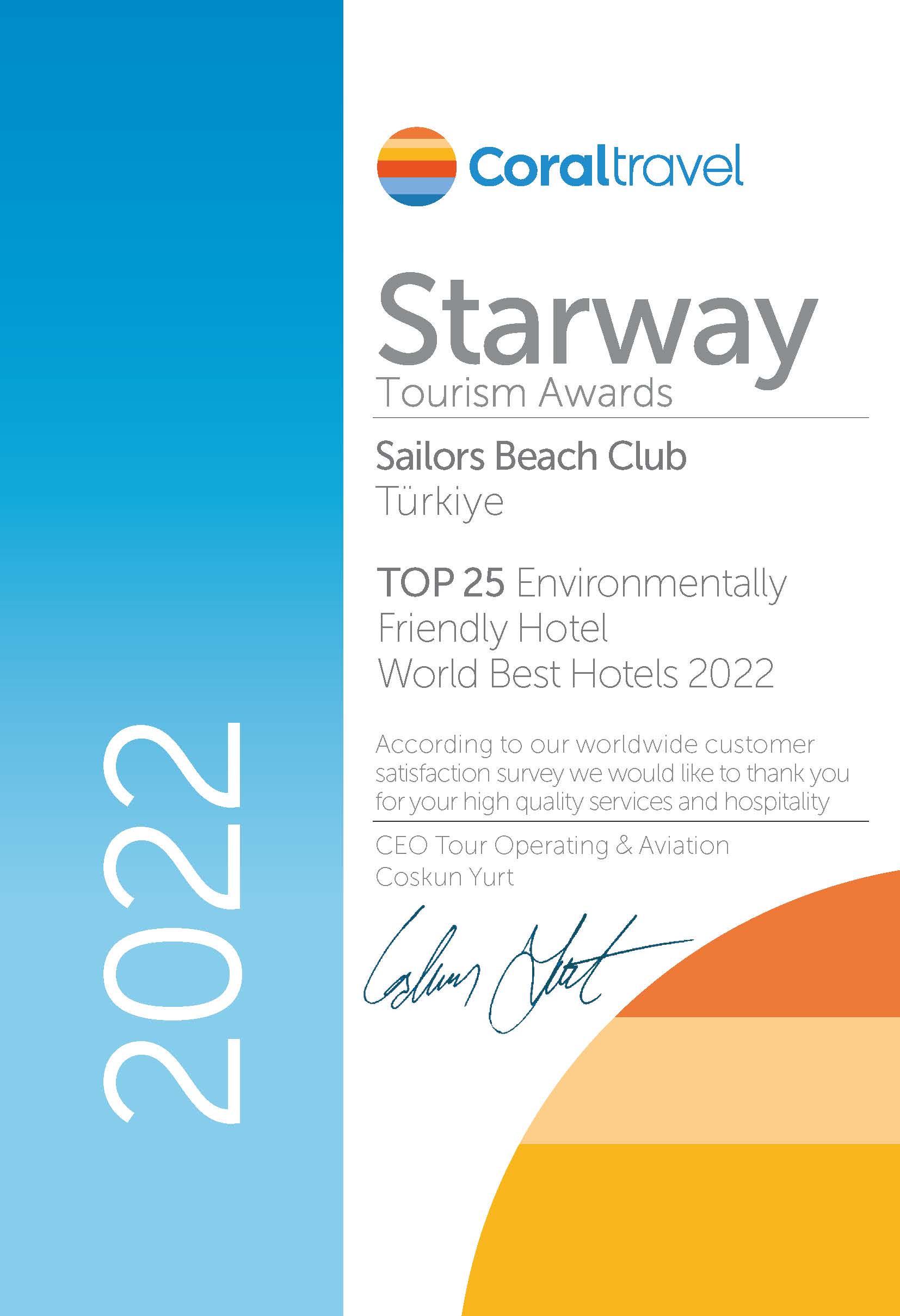 Coral Travel Starway Tourism Awards TOP 25 Environmentally Friendly Hotel World Best Hotels 2022