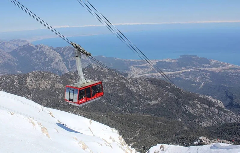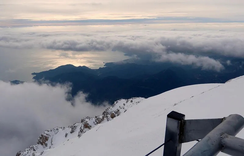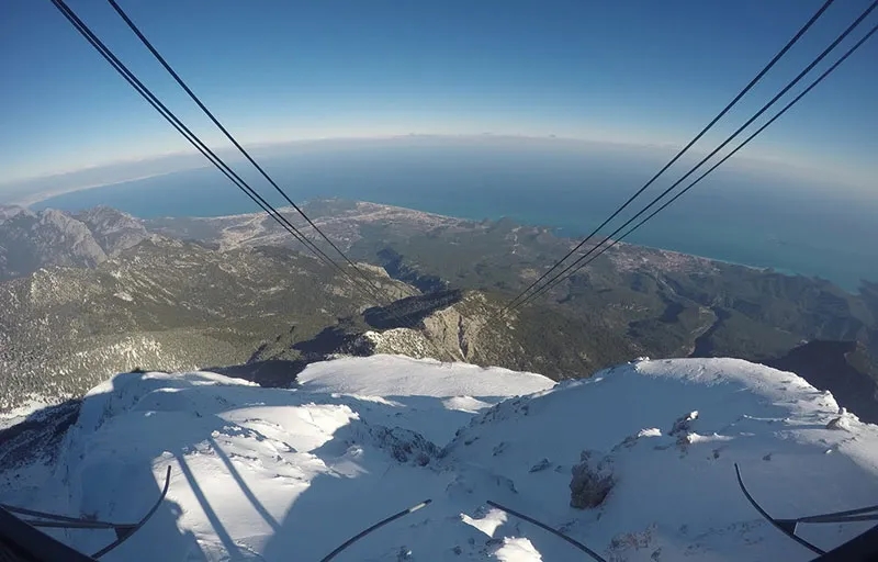 Tahtalı Dağı, also known as Lycian Olympus, is a mountain near Kemer, a seaside resort on the Turkish Riviera in Antalya Province, Turkey. It was known as Olympus and Phoenicus (Greek: Φοινικοῦς) in ancient times. It is part of the Beydağları Coastal National Park. Visitors can ascend the summit with the Olympos Aerial Tram. The Lycian Way long distance trail traverses the mountain.