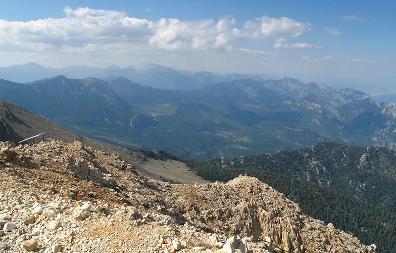 Tahtalı Dağı lies on the east coast of the Teke Peninsula (Lycian Peninsula) and dominates the landscape around Kemer. Can booked between Antalya and Finike to him as dominant peaks of the mountain range Bey Dağları see a part of the way through the south of the Turkey withdrawing Taurus Mountains. Its close proximity to the coast of the Mediterranean Sea makes it far visible to mariners. It is the highest mountain in the Natural Park of Olympos - Beydağları - Milli Park. From November to often into June, the summit is covered with ice and snow. In the spring of this snow layer is often reddish brown colored by Sahara winds, while it is often not seen in the summer because of the clouds. The vegetation-free zone starts at about 1900 meters height.