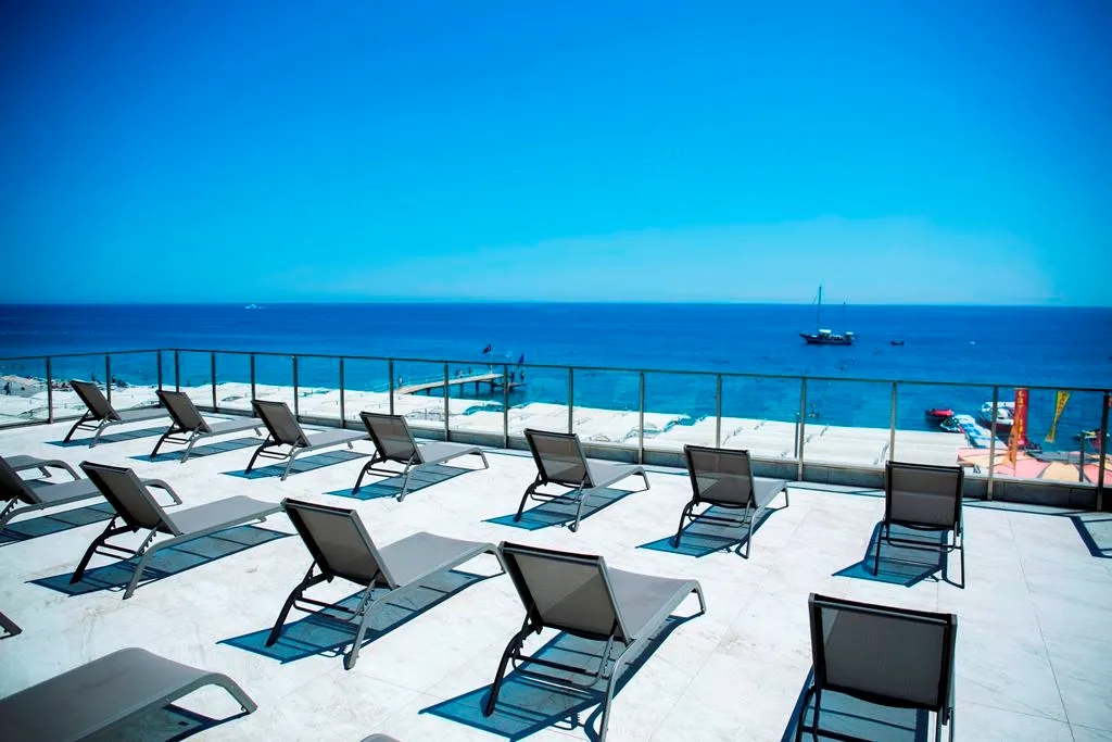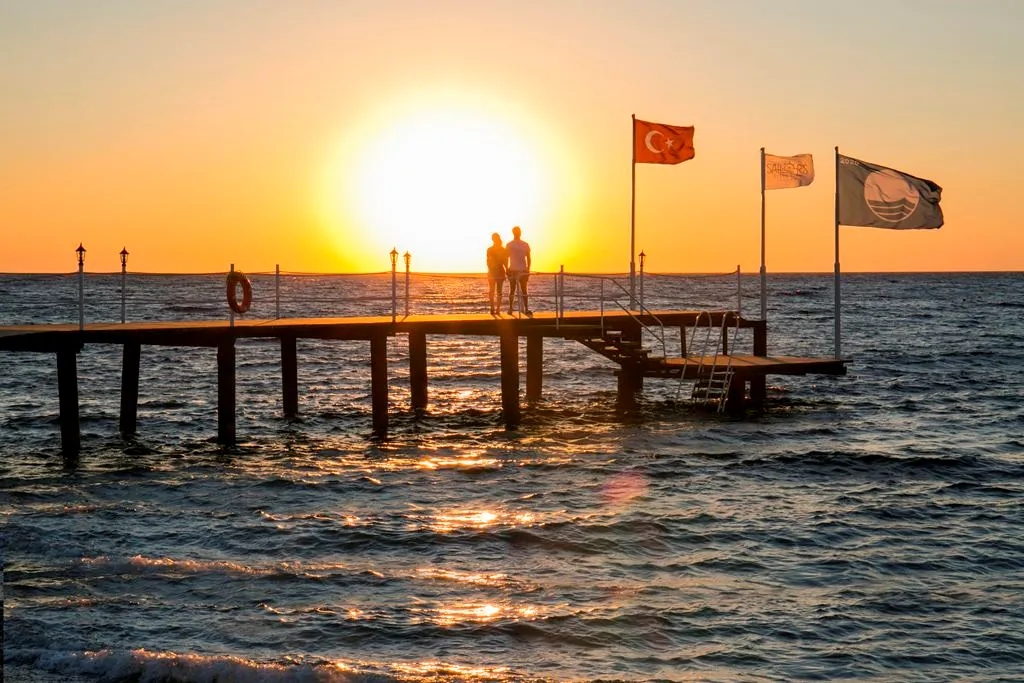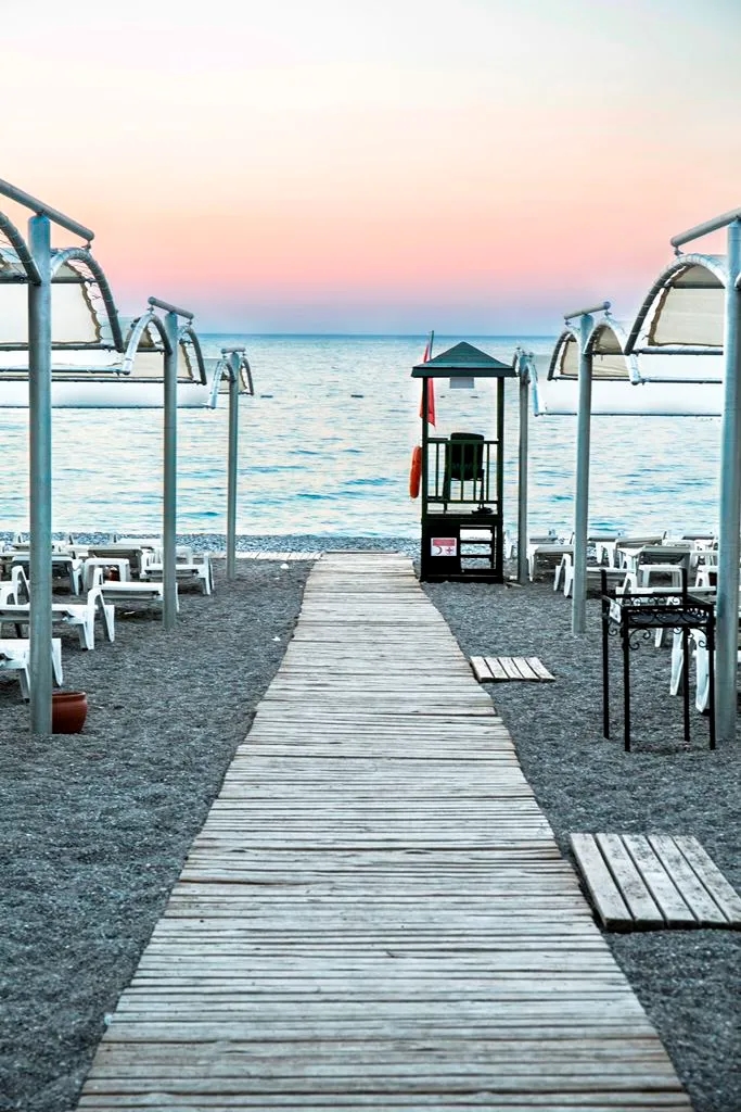 With a magnificent view of the setting of the evening sun in the unique beauty of the Mediterranean Sea, the clean and clear sea will amaze you. Our 70 m. long sandy-gravel private beach has sun beds, towels, cushions, showers, umbrellas and dressing rooms.