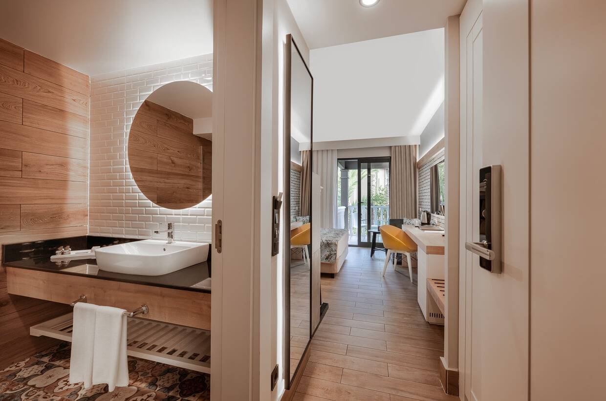 Они площадью 24 м2. Во всех номерах 1 спальня ( 1 двухспальная кровать+ 1 двухъярусная кровать), кондиционер, керамический пол. Подробная информация Семейный номер Все номера площадью 24 м2, вмещают в себя 1 спальню ( 1 двухспальная кровать+1 двухъярусная кровать), кондиционер,керамический пол, мини-бар, цифровой сейф, 102 HD-LED/ спутниковое телевидение, музыкальный канал(с телевизора) трансляция), стационарный телефон, душ, туалет, туалетные принадлежности, тапочки, фен, косметическое зеркало, балкон, набор для приготовления чая и кофе, чайник, WiFi.